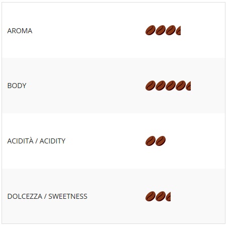 It results form a careful selection of Arabica and Robusta coffees for those who like a strong taste and dark cream to their coffee.
