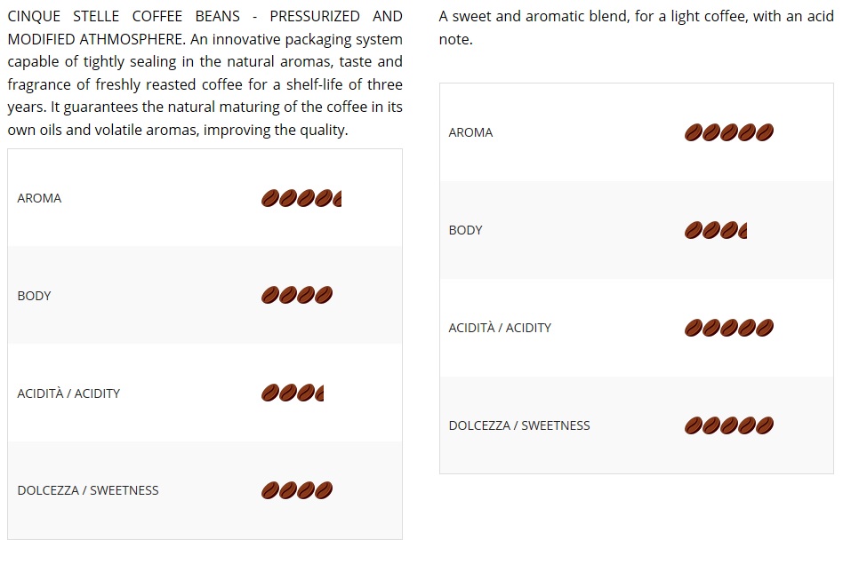 GROUND COFFEE CINQUE STELLE Our packaging process guarantees the natural maturing of the coffee in its own oils and volatile aromas, improving the quality. Grinding of selected coffee, good for both the Moka and espresso machines.